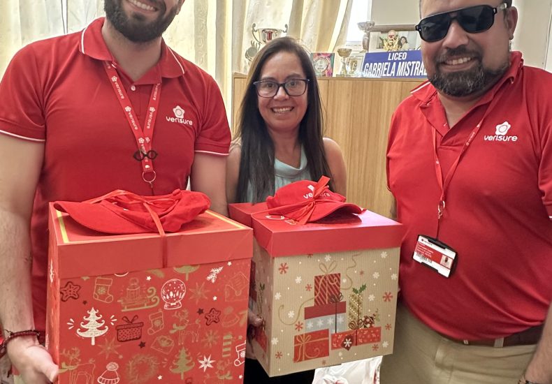 Este jueves, Rodolfo Camuceti y Benjamín Vargas, en representación de la empresa Verisure, realizaron una visita al Liceo Gabriela Mistral de Melipilla, donde entregaron 10 canastas de alimentos destinadas a que igual número de familias puedan realizar una cena navideña completa. La iniciativa tuvo como objetivo apoyar a estudiantes que, por diversas razones principalmente económicas,