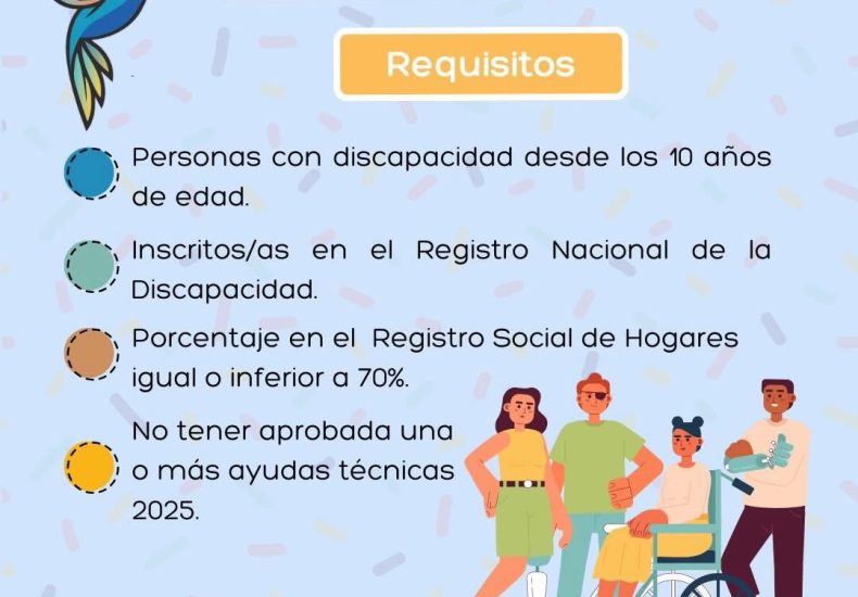 Entre los requisitos establecidos para postular se encuentra tener desde 10 años de edad, estar inscrito en el Registro Nacional de la Discapacidad, contar con Registro Social de Hogares hasta el 70% y no haber recibido ayudas técnicas durante el año 2025.
