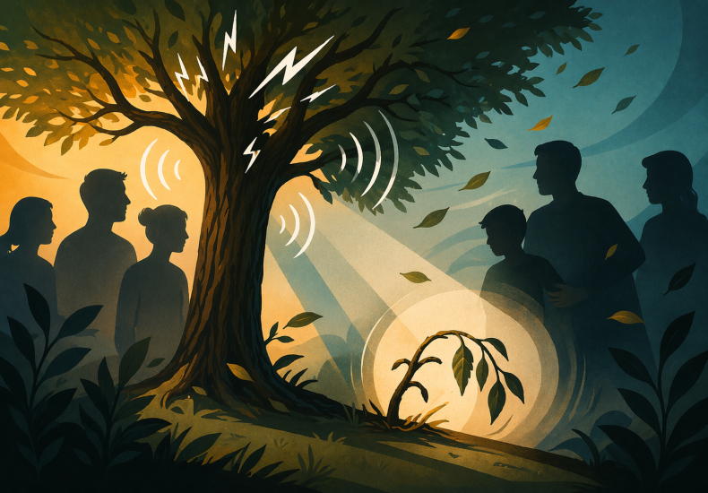 Por Daniela Foster – Orientadora Familiar Sistémicaorientacoachlife@gmail.com Había una vez, en un bosque, cuando el viento soplaba con fuerza, había un árbol que crujía más que todos. Sus ramas se agitaban con intensidad, sus hojas golpeaban unas con otras y el sonido se imponía por sobre el resto. Todos miraban ese árbol. Parecía el más